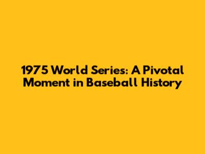 1975 World Series: A Pivotal Moment In Baseball History
