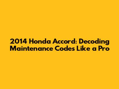 2014 Honda Accord: Decoding Maintenance Codes Like A Pro