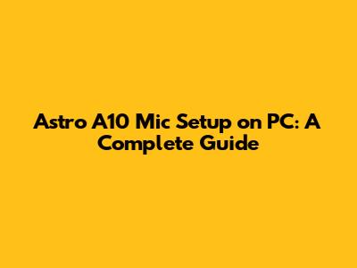 Astro A10 Mic Setup On PC: A Complete Guide