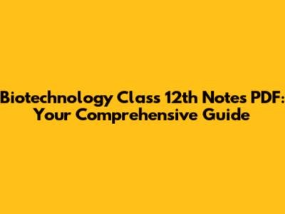 Biotechnology Class 12: Your Ultimate Notes PDF Guide