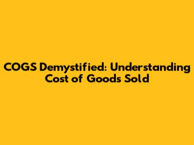 COGS Demystified: Understanding Cost Of Goods Sold