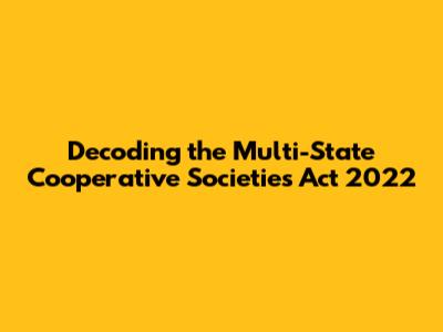 Decoding The Multi-State Cooperative Societies Act 2022
