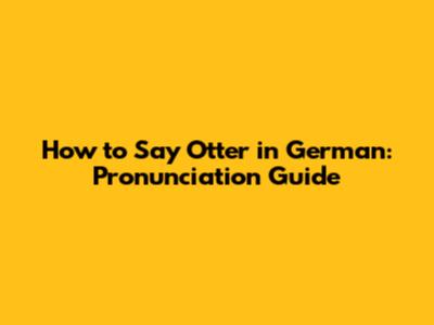 How To Say Otter In German: Pronunciation Guide