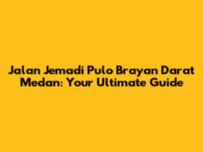 Jalan Jemadi Pulo Brayan Darat Medan: A Comprehensive Guide
