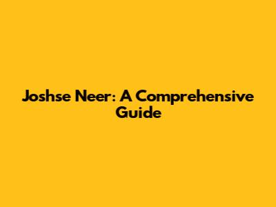 Joshse Neer: A Comprehensive Guide