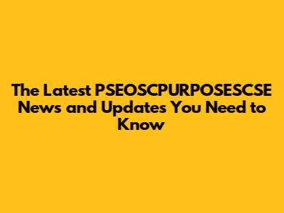 Latest PSEOSCPURPOSESCSE News & Updates