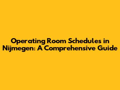 Operating Room Schedules In Nijmegen: A Comprehensive Guide