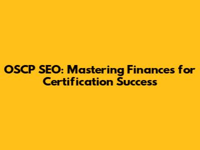 OSCP SEO: Mastering Finances For Certification Success