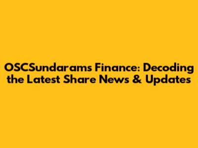 OSCSundarams Finance: Latest Share News & Updates