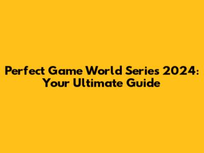 Perfect Game World Series 2024: Schedule & Guide