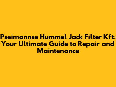 Pseimannse Hummel Jack Filter Kft: A Comprehensive Guide