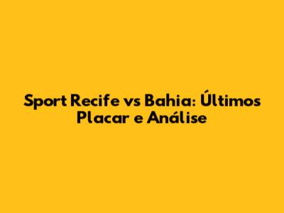 Sport Recife Vs Bahia: Últimos Placar E Análise