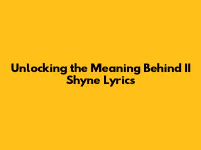 Hey guys! Ever found yourself bobbing your head to a track and thinking, “Wow, these lyrics are deep,” but not quite grasping the full picture? Today, we're diving deep into the lyrical genius of II Shyne. Whether you're a long-time fan or new to his music, understanding the context and meaning behind the lyrics can seriously enhance your appreciation. Let's break it down and uncover the stories, emotions, and messages woven into his songs. We'll explore common themes, dissect specific lines, and provide insights that will help you connect with his music on a whole new level.